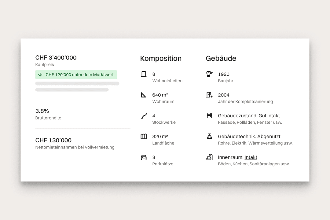 Alle empfohlenen Immobilien sind transaktionsbereit. Sämtliche Liegenschaften und Verkäufer werden von uns vorab verifiziert.